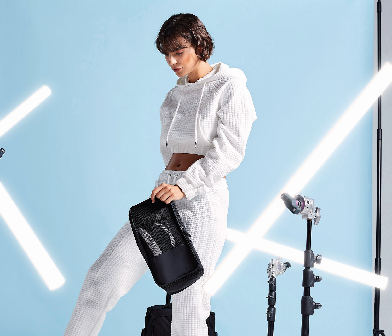 Satz mit 3 belüfteten Täschchen zur Aufbewahrung. Reißverschluss.