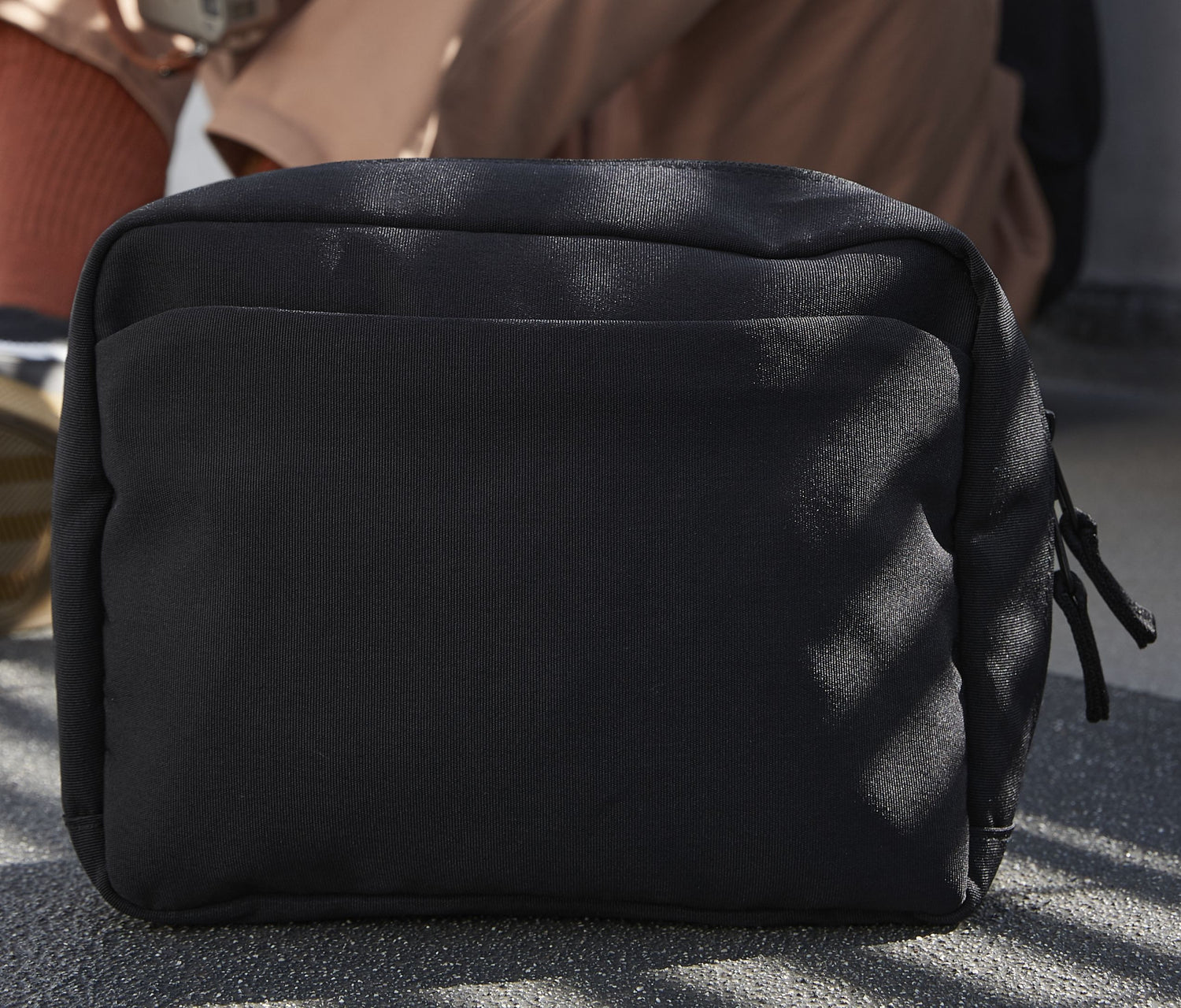 Fronttasche mit Reißverschluss. Innentasche mit Reißverschluss. Zwei Innentaschen.