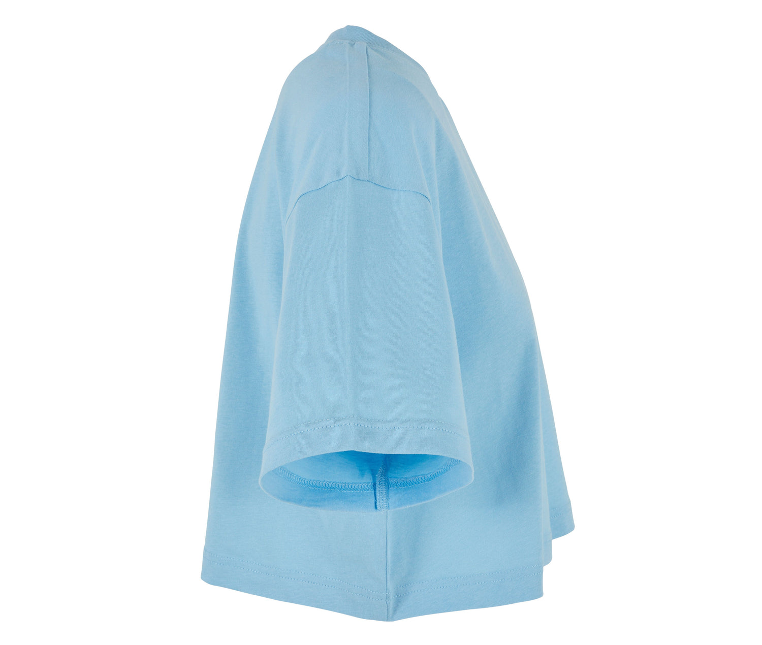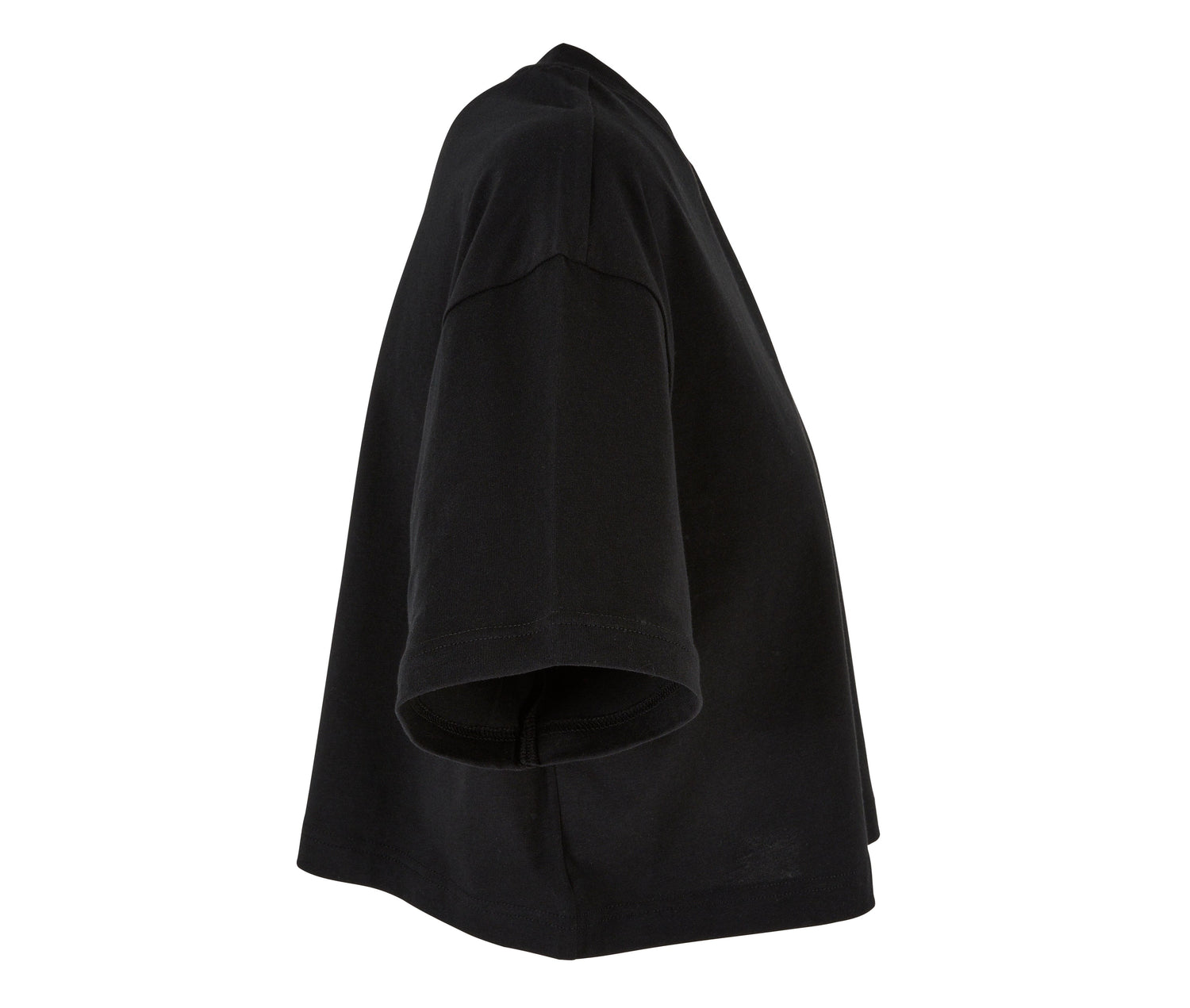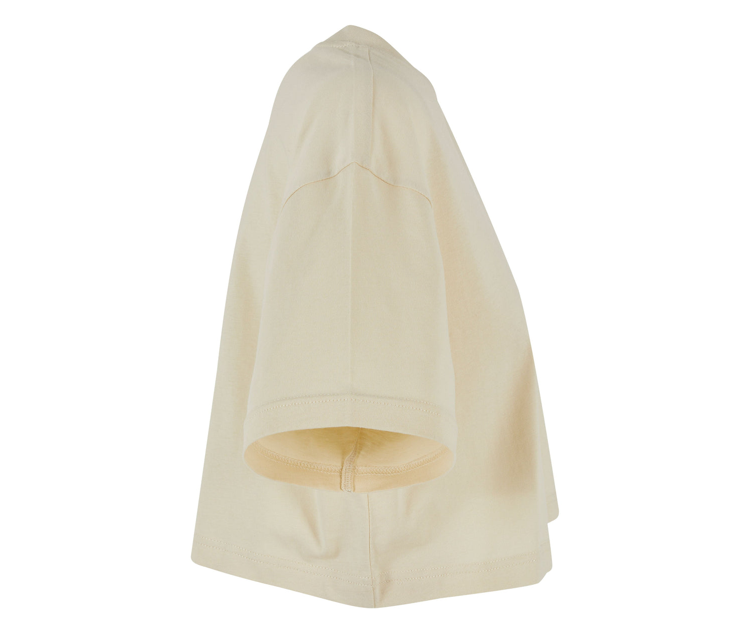 Kurzes Oversize-T-Shirt. Gerade Ärmel. Seitliche Nähte.