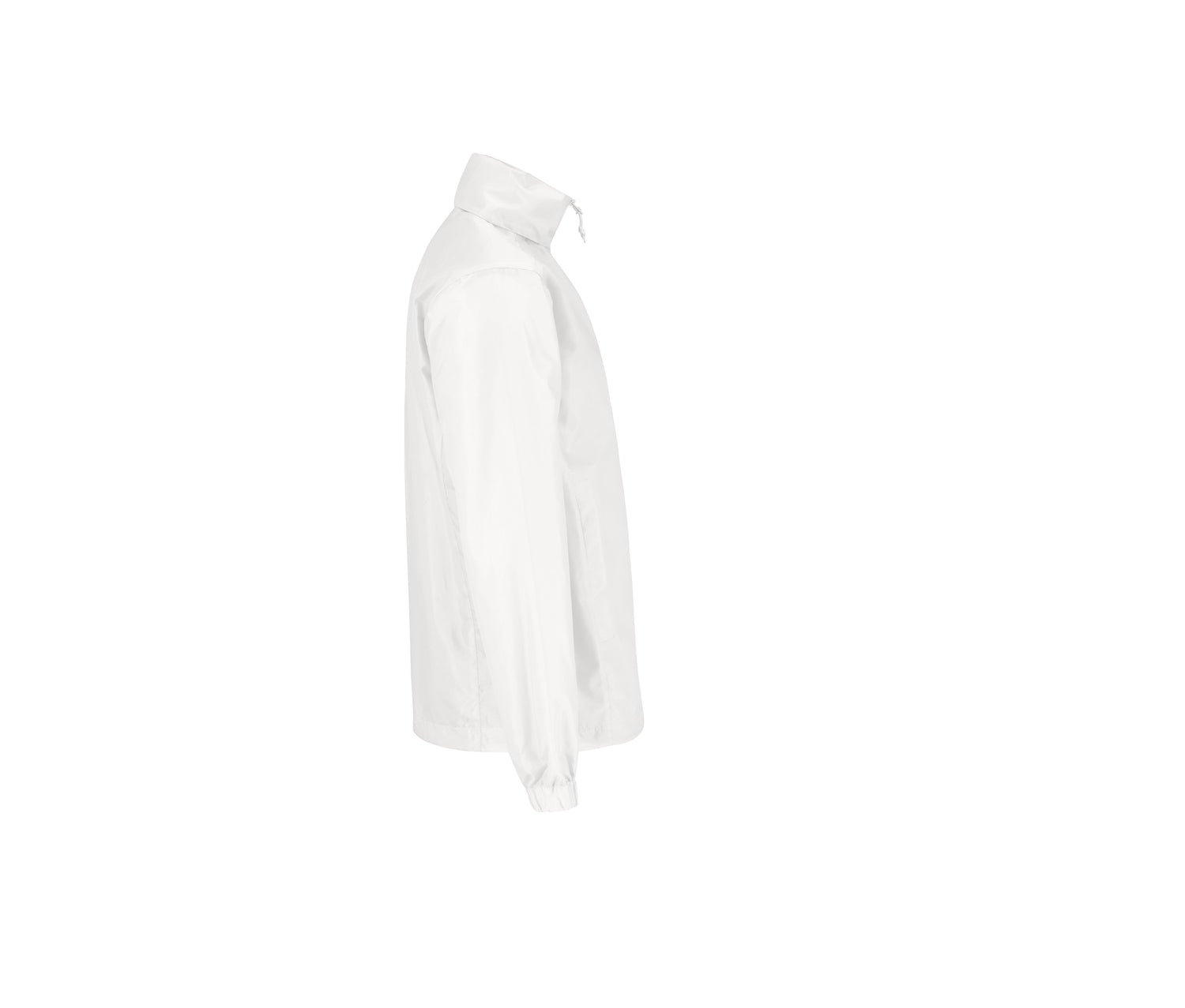 Wasserdichte Windjacke mit thermoisolierender Tricot-Fütterung. Ergonomische Kapuze im Kragen mit Klettverschluss. 2 Vordertaschen mit Klappe und 1 Geldbeuteltasche.