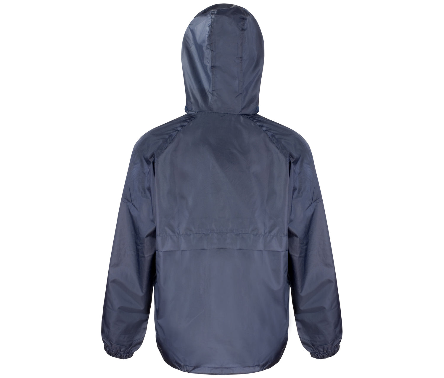 Wasserabweisend. Verstellbare Kapuze im Kragen. Zugriff für die Beschriftung.