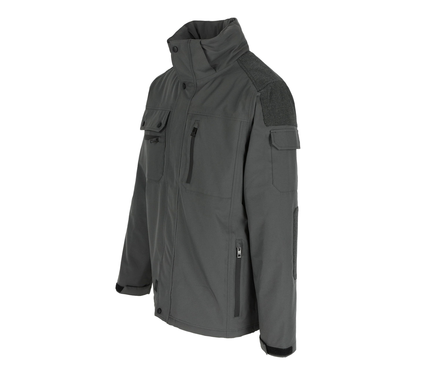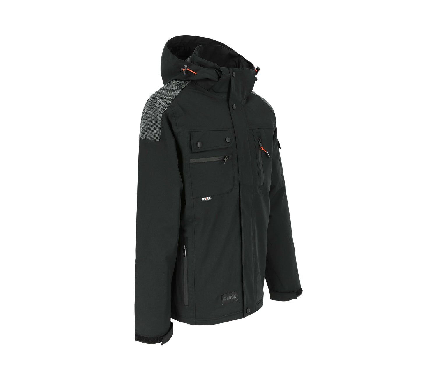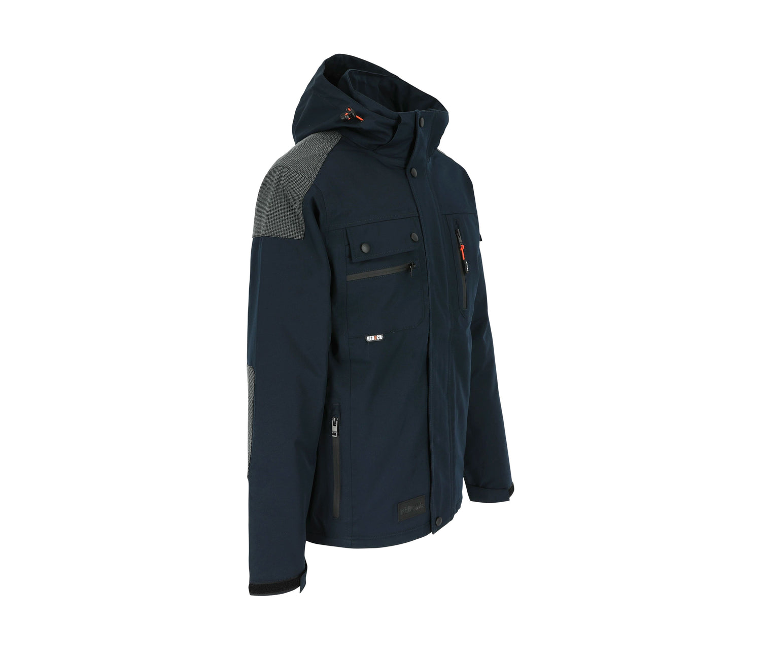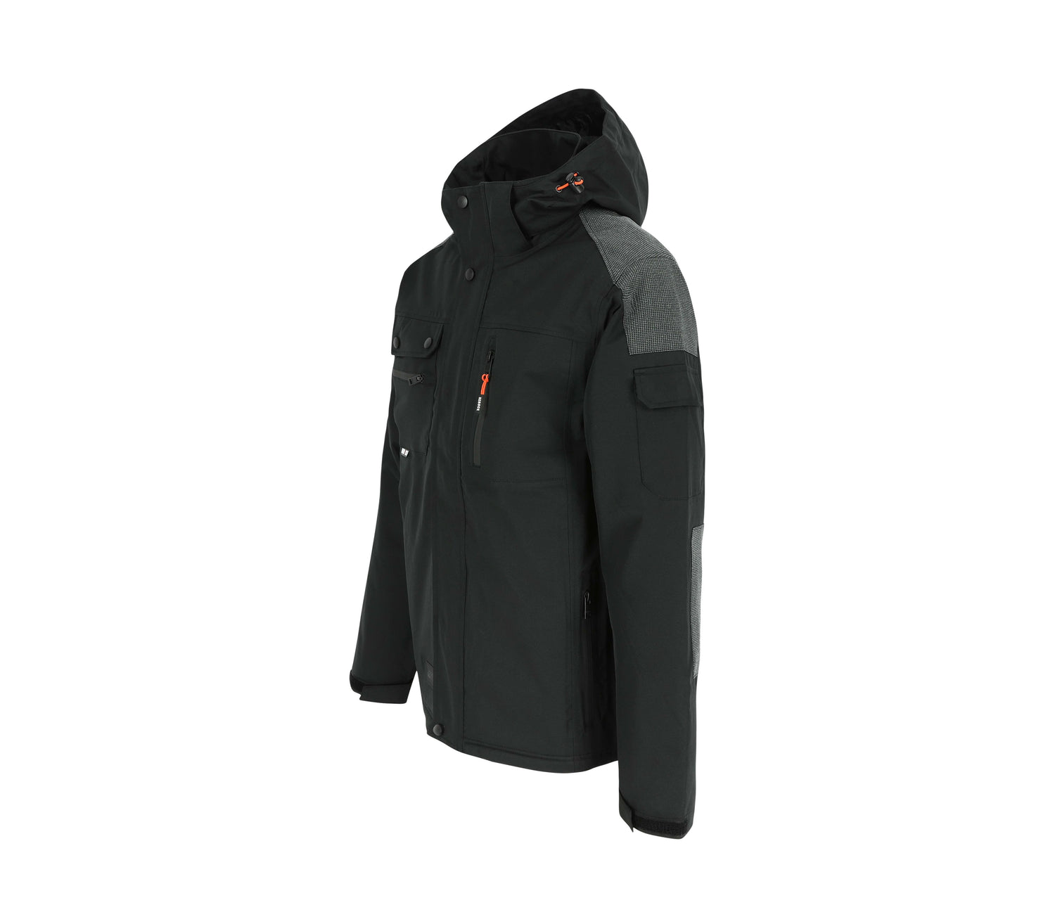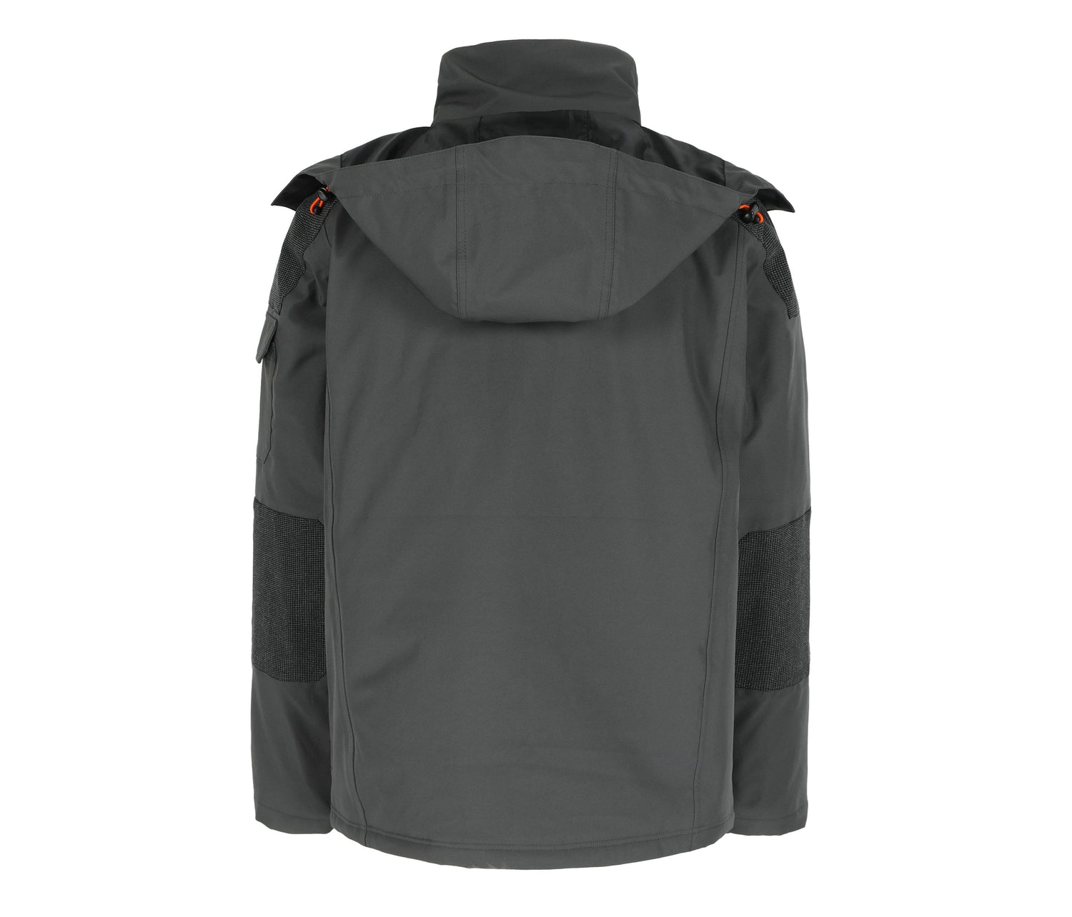 Jacke mit vielen Taschen, atmungsaktiv und Wasserdicht . An den Schultern und Ellenbogen verstärkte Einsätze. Kapuze, Ärmelbündchen und unten verstellbar.