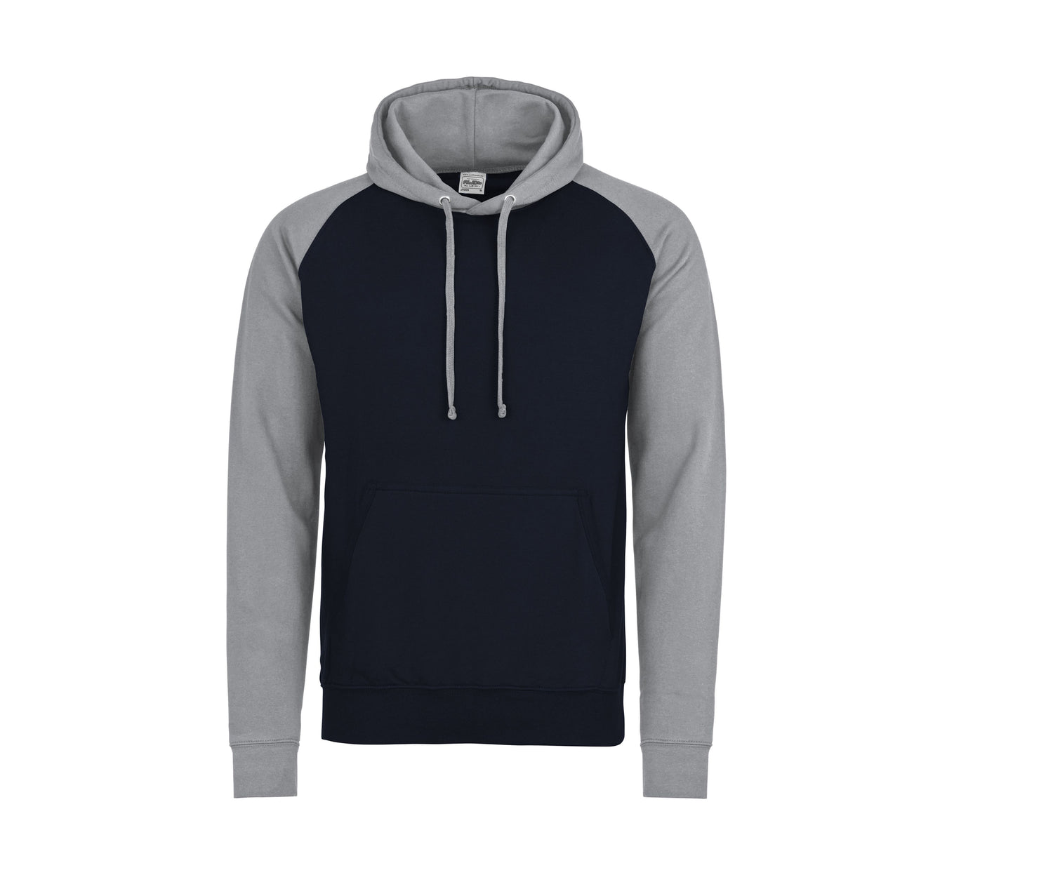 Raglanärmel. Kontrastierende Ärmel und Kapuze. Flache, kontrastierende Zugbänder. Innen angeraut.