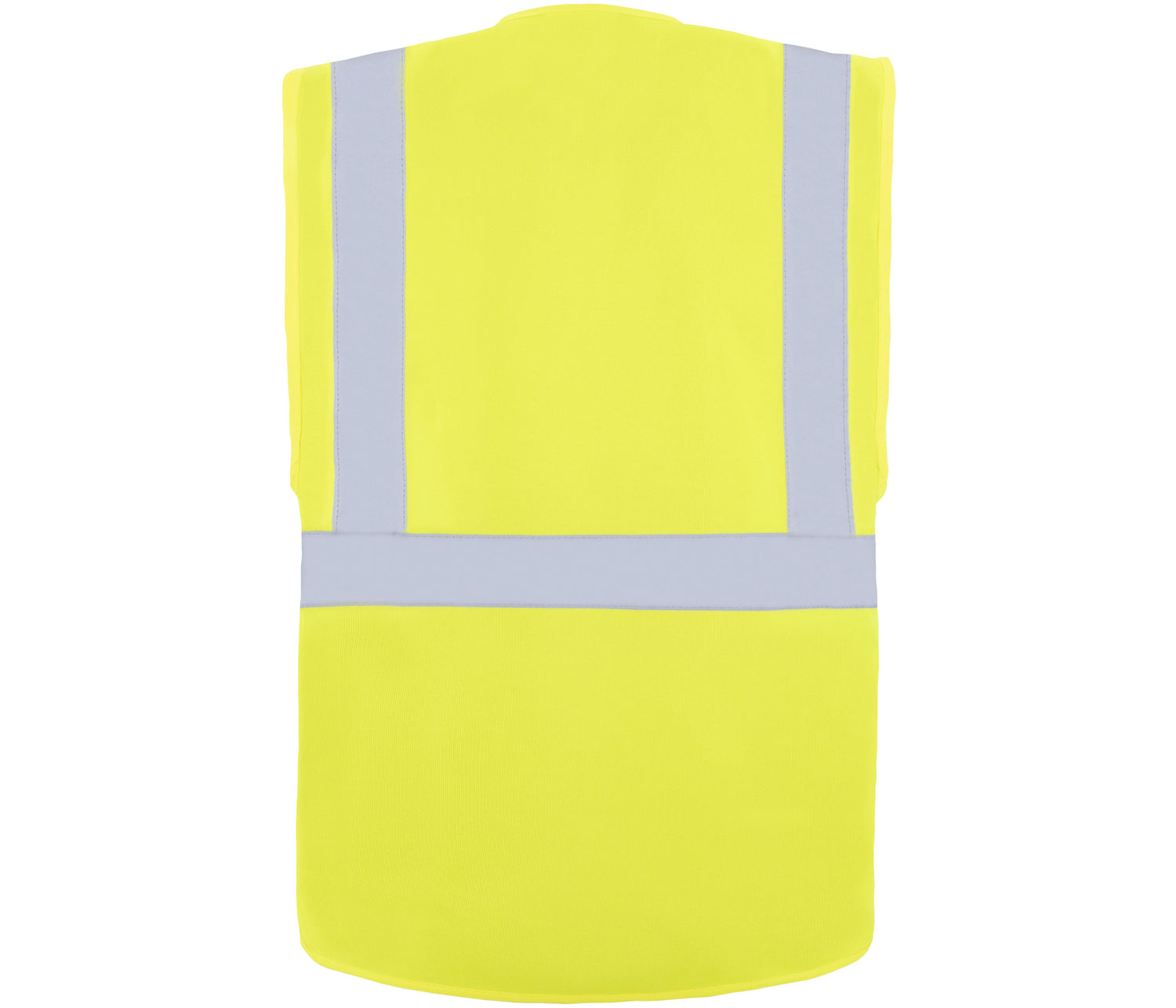 Sicherheitsweste mit zwei 5 cm breiten reflektierenden Streifen um den Körper und an den Schultern. Zertifiziert nach der Norm EN ISO:20471.