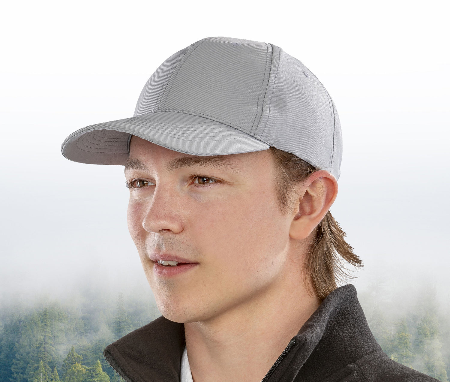 Vorgeformtes Visier mit 6 Nähten. Größenverstellbar durch Klettband. 6 Panels. 1 recycelte Plastikflasche pro Produkt.