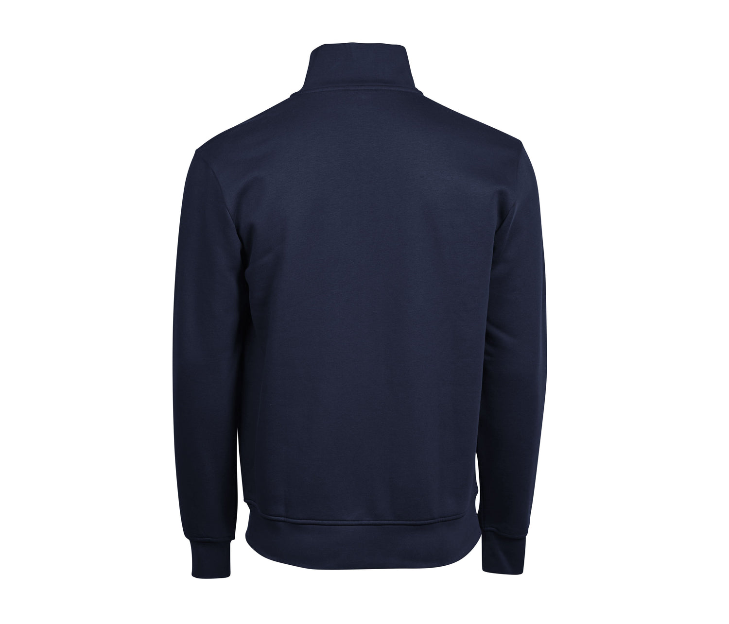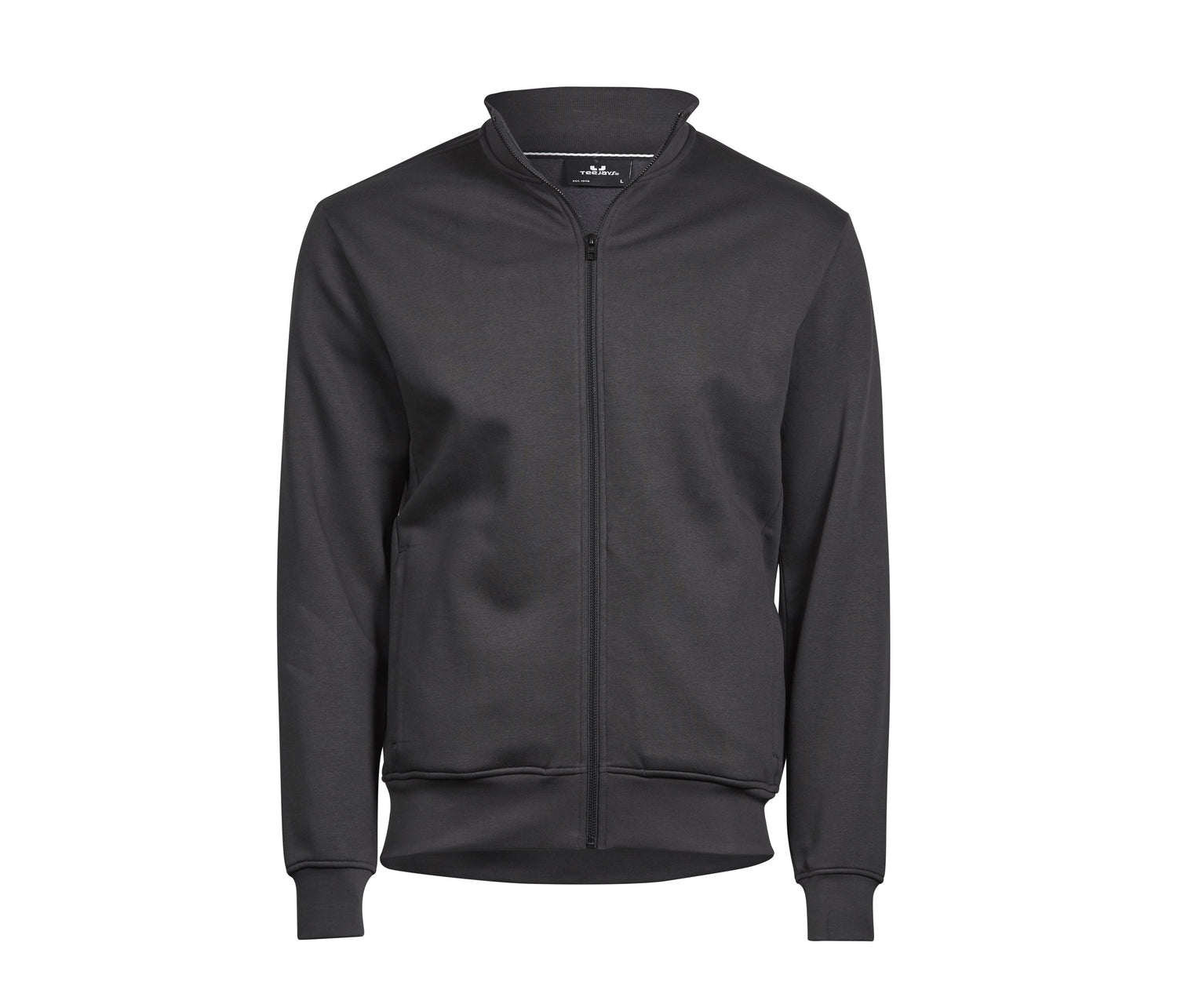 Rippenbündchen an Ärmelbündchen, Kragen und Bund. Stehkragen. 2 Reißverschlusstaschen.