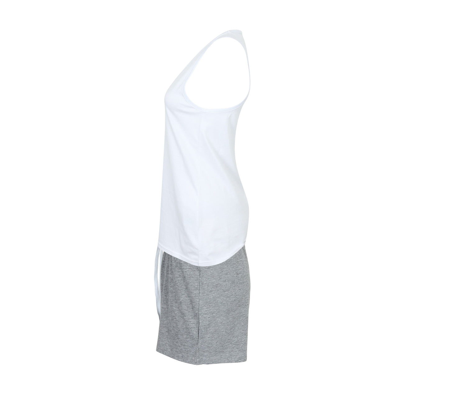 Set: weißes Tanktop und kontrastierende Shorts. Weich und leicht. Wird in einem kontrastierenden Beutel mit Kordelzug verkauft.