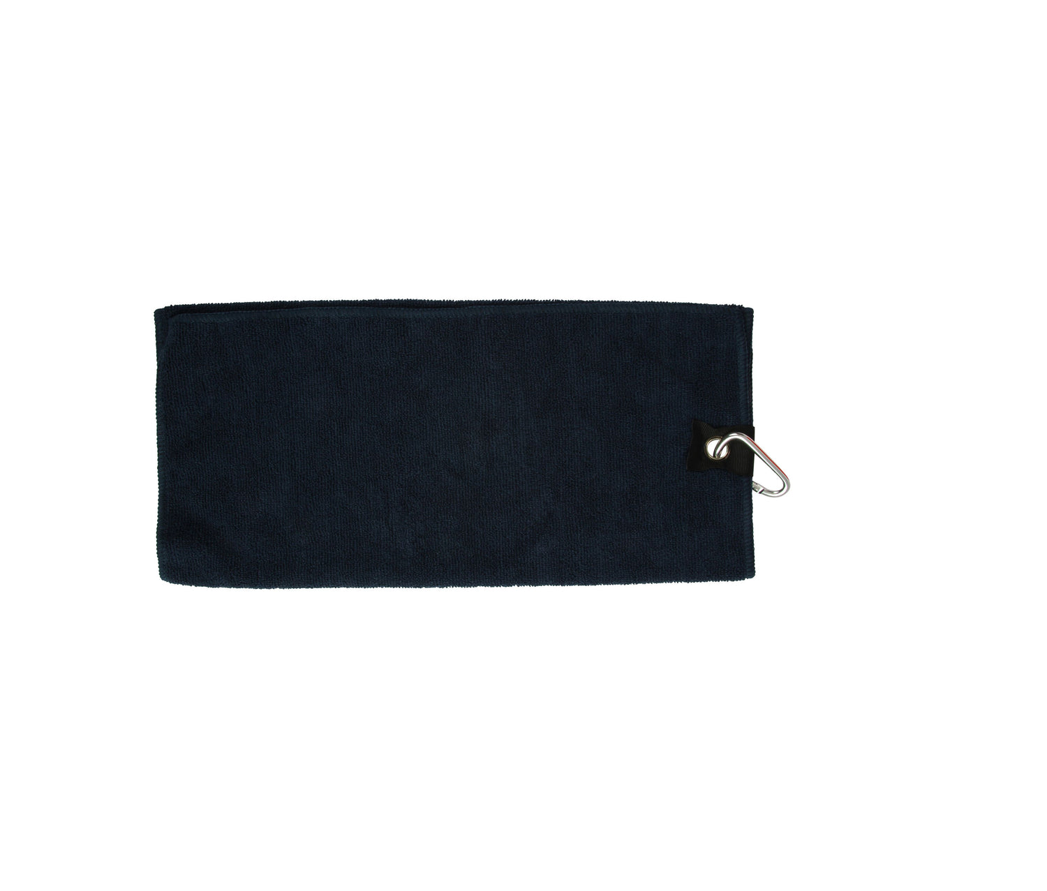Golf-Handtuch Dreifachlänge aus Mikrofaser. Grob genarbtes Band mit Metallöse Befestigungskarabiner. Saum überwendlich.