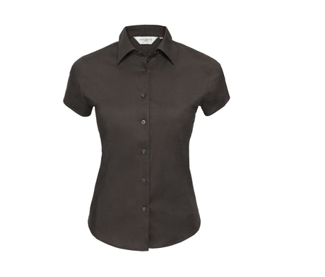 RUSSELL COLLECTION LADIES' SHORT SLEEVE FITTED STRETCH SHIRT