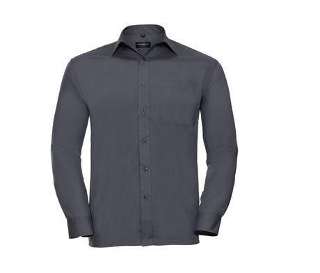 RUSSELL COLLECTION MEN'S LONG SLEEVE CLASSIC POLYCOTTON POPLIN SHIRT