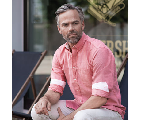 RUSSELL COLLECTION MEN'S LONG SLEEVE TAILORED WASHED OXFORD SHIRT