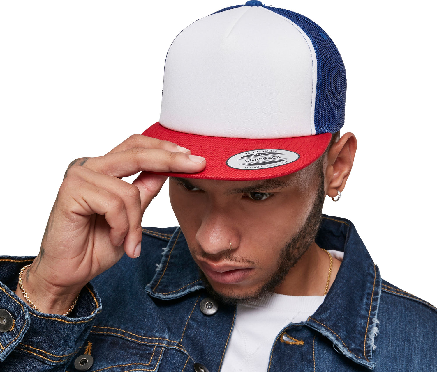 FLEXFIT Foam Trucker with White Front - 0 / BLACK / WHITE / RED is backordered and will ship as soon as it is back in stock.