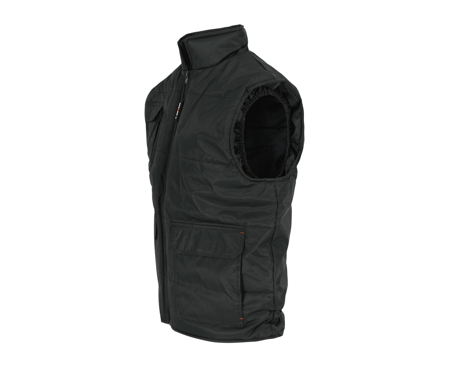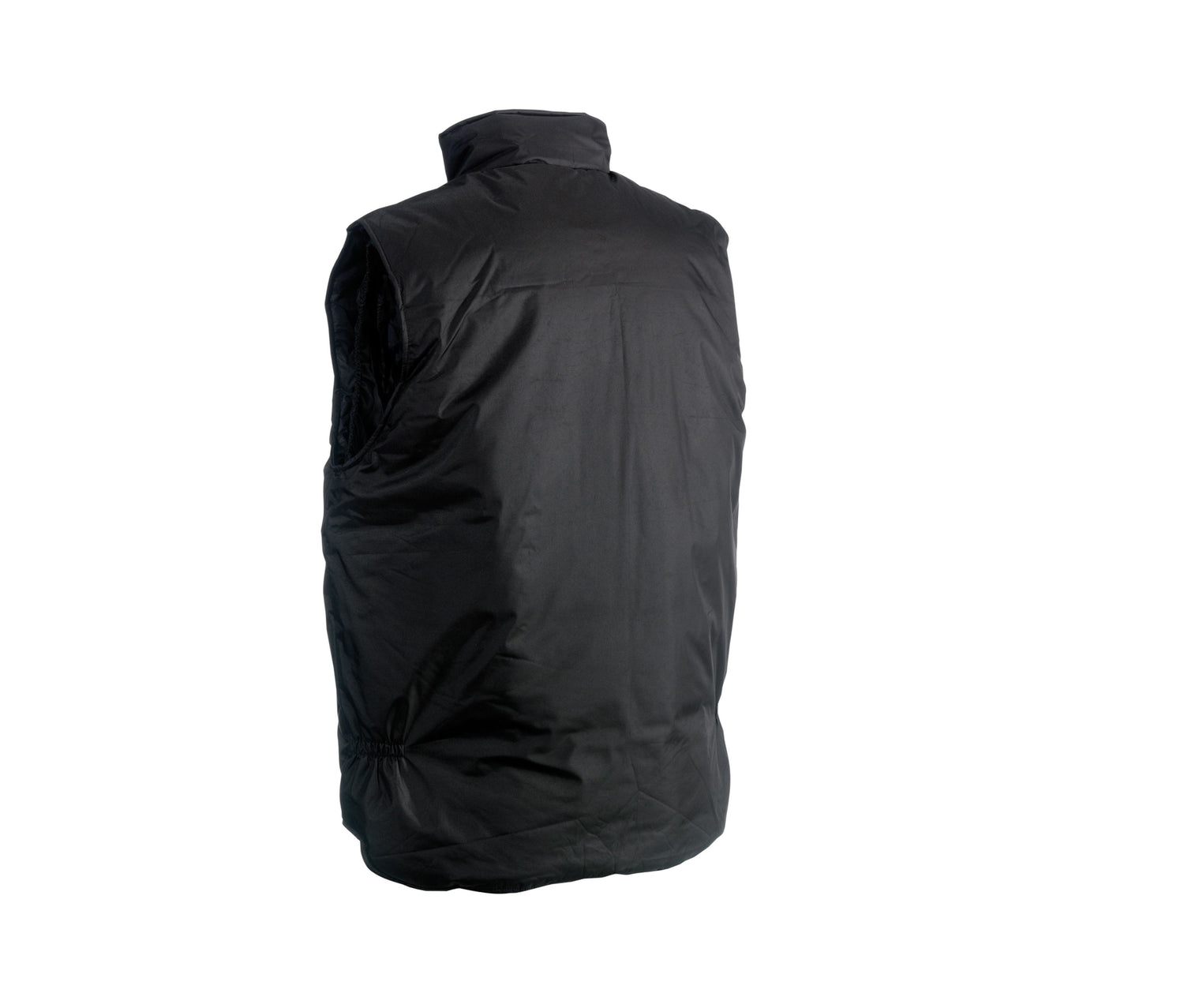 Water-repellent and windproof vest with pockets. Tapered and elastic armholes. Access for customization.