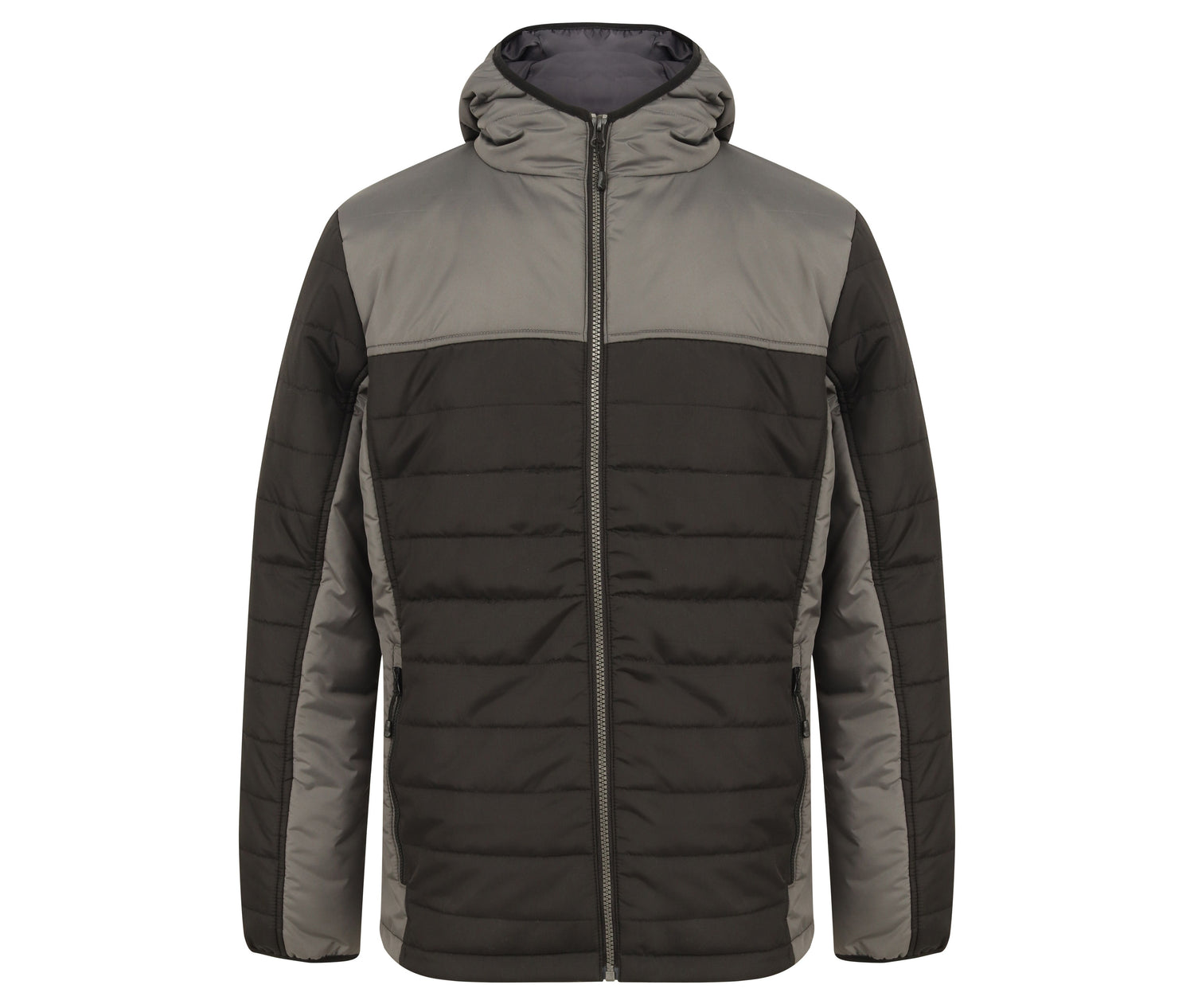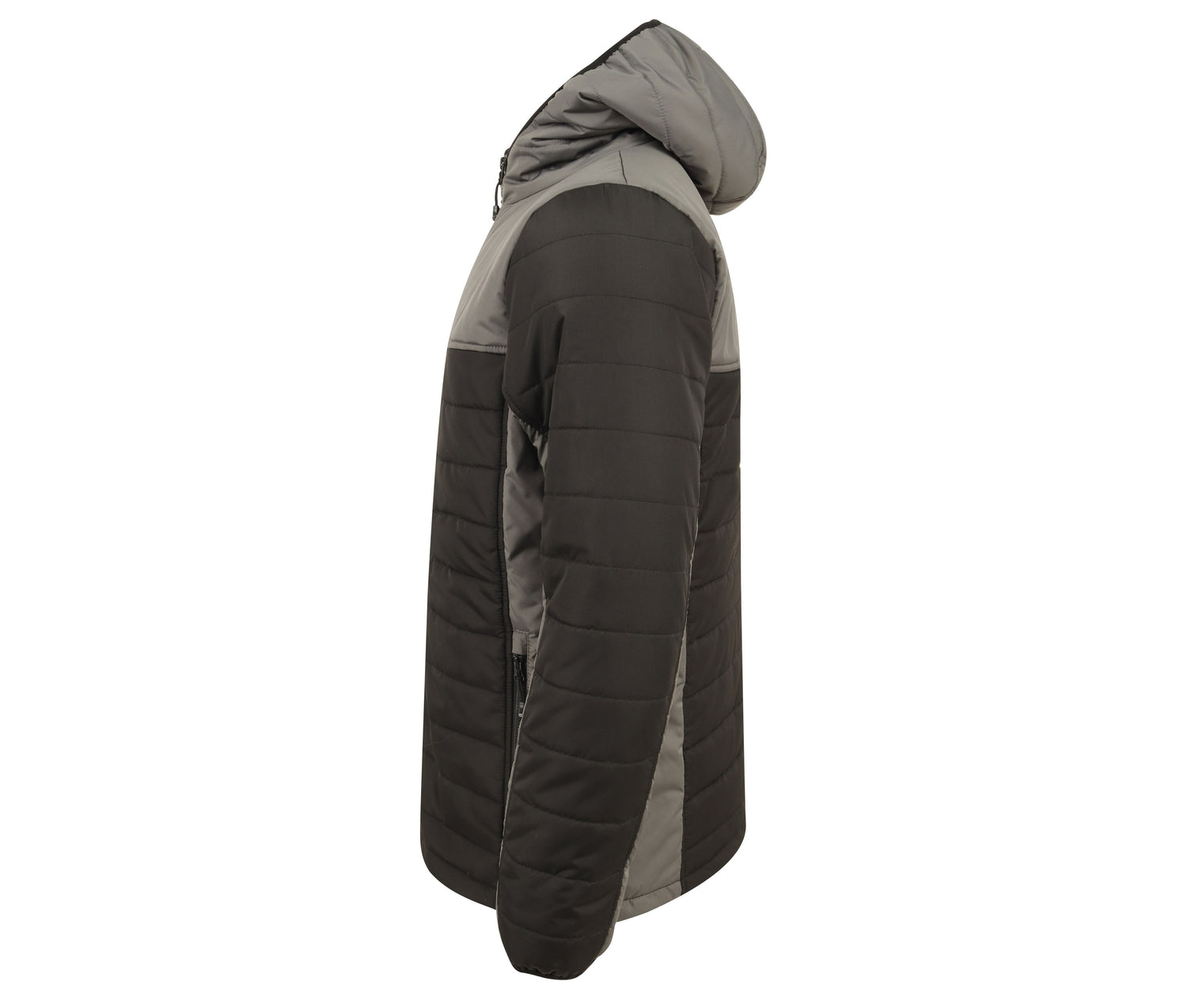 Polsterung leicht/mittel. Keine Nähte an den Einsätzen an den Seiten und unter den Armen. Kapuze, Brust, oberes Rückenteil, unter den Ärmeln und Einsätze an den Seiten kontrastiert.