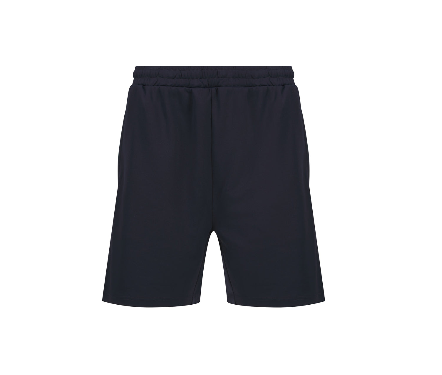Elastischer Bund mit fester Kordel. Reißverschlusstaschen an den Seiten. Doppelte Nähte an der Unterseite der Shorts.